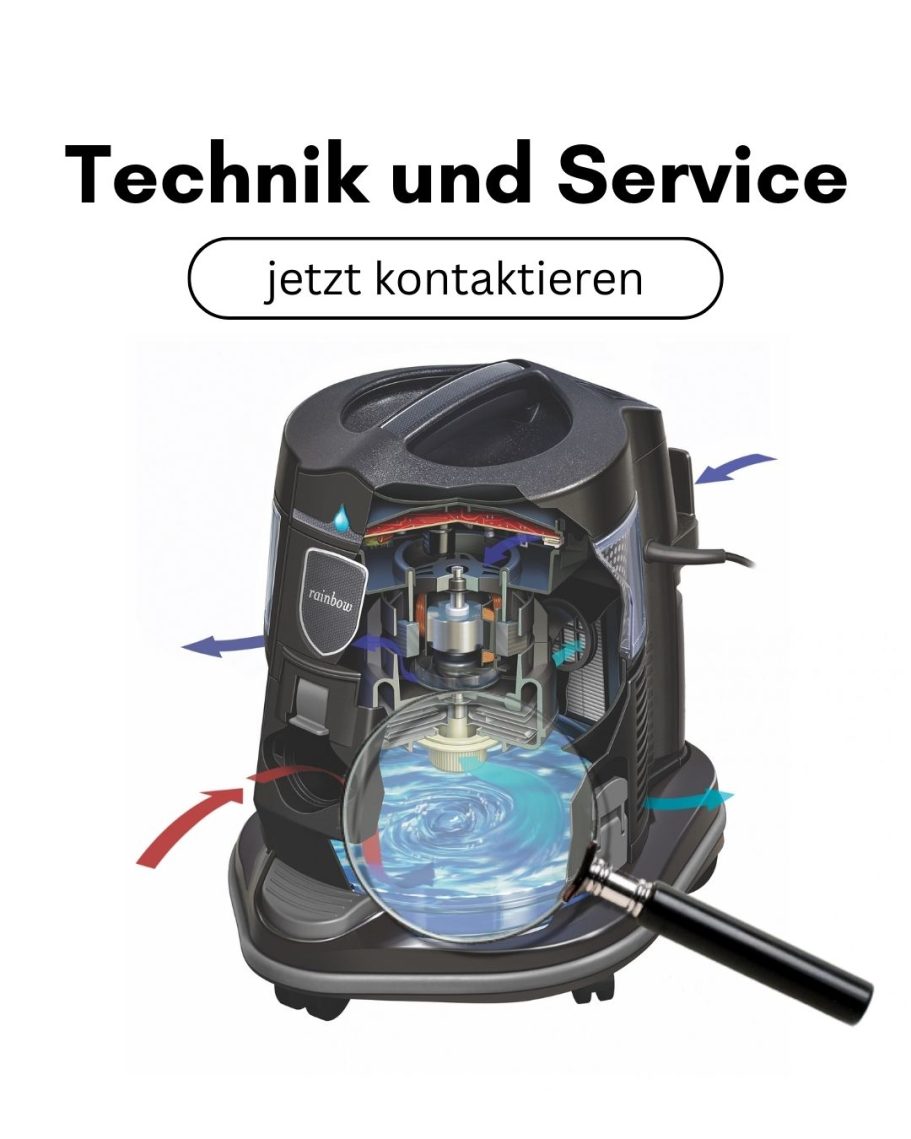 Regen wäscht die Luft in einem Wasserbad. Selbst die kleinsten Schadstoffe werden aufgefangen. Nach diesem Prinzip ist das Rainbow Wasserreinigungssystem entstanden. Die Beutel und Filter eines Staubsaugers können die kleinen Partikel oft nur kurze Zeit zurückhalten und geben sie dann direkt wieder in die Luft ab.